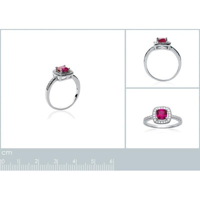 Bague solitaire femme - argent 925 massif rhodié - zircon rose carré 4 griffes