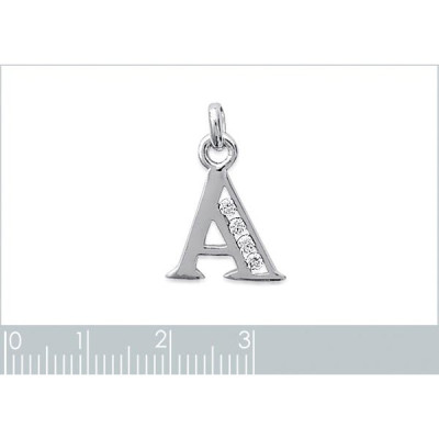 Pendentif femme initiale lettre "A" majuscule 13mm argent rhodié et zirconium