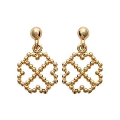 Boucles d'oreilles trèfles pendantes femme Plaqué Or 750 jaune 16mm x 10mm