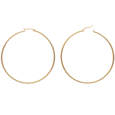 Grandes boucles d'oreilles créoles Acier doré jaune 70mm x 2mm