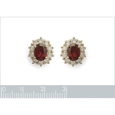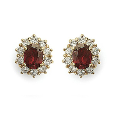 Boucles puces d'oreilles 13 mm femme Plaqué Or Zirconium et pierre rouge
