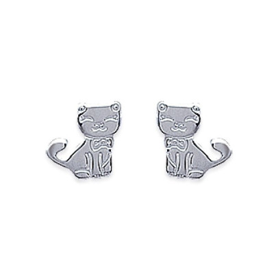 Boucles d'oreilles puces 8 mm petit chat enfant fille - Marion - argent 925