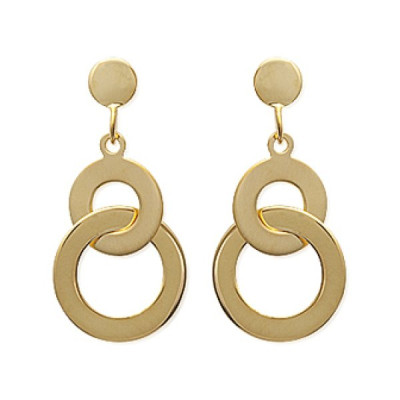 Boucles d'oreilles pendantes disques anneaux Plaqué Or 750 femme 23mm x 10mm
