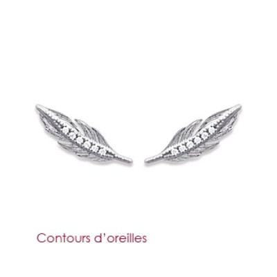 Contours d'oreilles plumes 17 mm - Alyce - argent 925 rhodié - oxyde zirconium