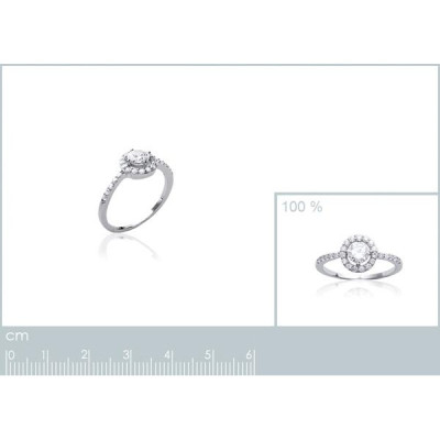 Bague solitaire femme - argent massif 925 rhodié - couronne zircons 4 griffes