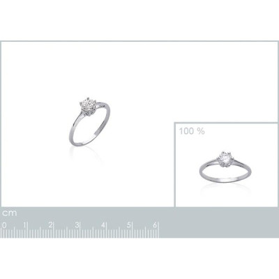 Bague solitaire femme - argent 925 massif rhodié - zirconium rond six griffes