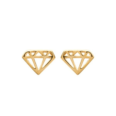 Boucles d'oreilles puces forme diamant ajouré 8 mm x 6mm Plaqué Or jaune 750