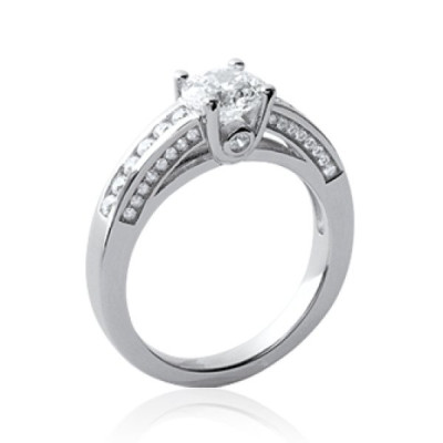 Bague solitaire empierrée femme en argent massif 925/1000 garanti