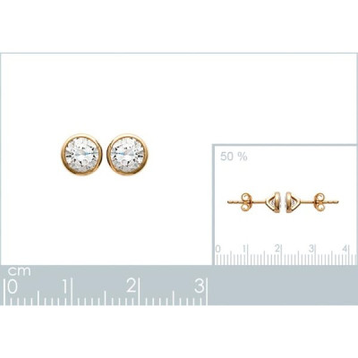Nouveau Boucles d'oreilles puces plaqué or 750 et oxyde de zirconium rondes
