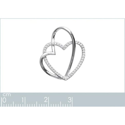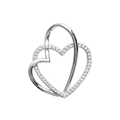 Pendentif coeurs entrelacés argent 925 rhodié 22mm x 20 mm Zircons sertis