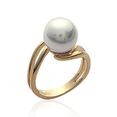 Solitaire femme - plaqué or jaune 18 carats - anneau scindé imitation perle