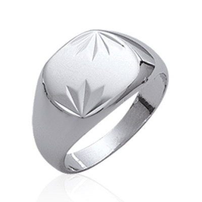 Bague chevalière homme - argent massif 925 rhodié - selle arrondie épis gravés