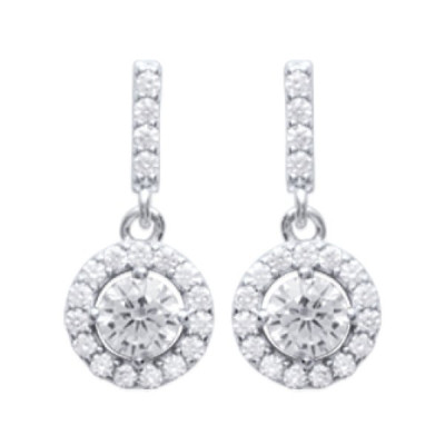 Boucles d'oreilles pendantes rondes 15 mm - Iliana - argent 925 rhodié - zircon