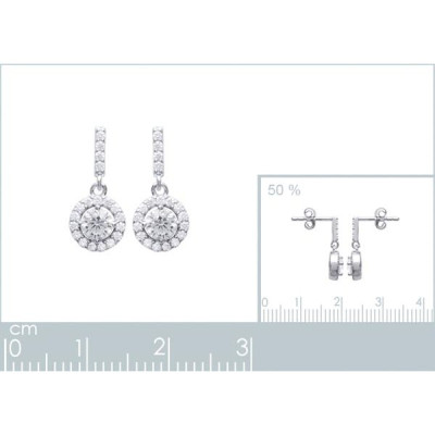 Nouveau Boucles d'oreilles pendantes rondes 15 mm - Iliana - argent 925 rhodié - zircon