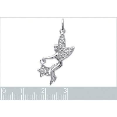 Pendentif Fée argent massif 925 rhodié 20mm étoile oxyde de zirconium