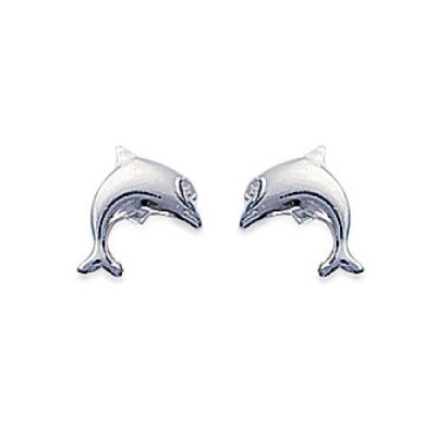 Boucles d'oreilles enfant puces dauphin 10 mm - Marthe - argent 925 rhodié