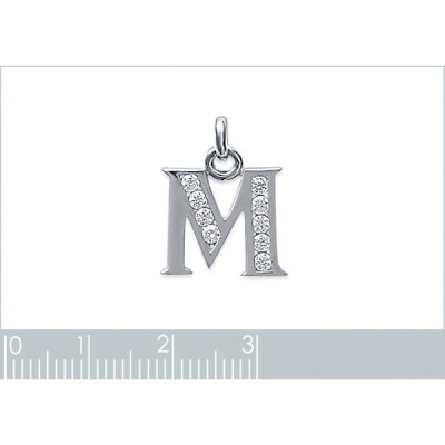 Pendentif initiale lettre "M" majuscule 15mm femme argent rhodié zirconium