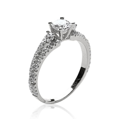 Solitaire femme - argent 925 massif rhodié - oxydes de zirconium micro sertis