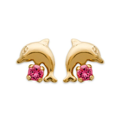 Boucles d'oreilles enfant puces dauphin Plaqué Or 750 et cristal rose 10mm x 8mm
