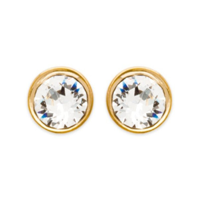 Boucles d'oreilles clous Plaqué Or jaune 4 mm et cristal transparent blanc