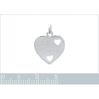 Pendentif Coeur ajouré Je t'aime" 17mm x 17mm argent massif 925 rhodié