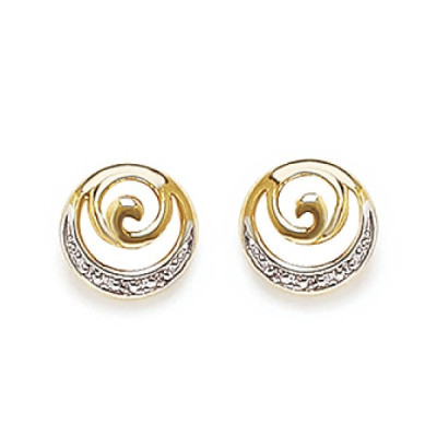 Boucles d'oreilles Plaqué Or jaune 750 bicolore Oxyde de Zirconium spirale 10 mm