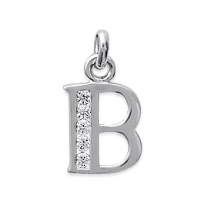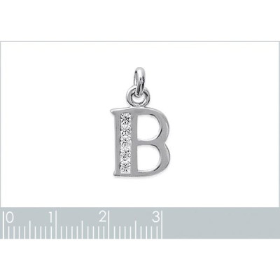 Pendentif femme Lettre "B" majuscule argent 925 rhodié et zircons 13mm