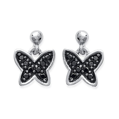 Boucles d'oreilles papillons 14 mm - Eloane - argent 925 rhodié - zircons noirs