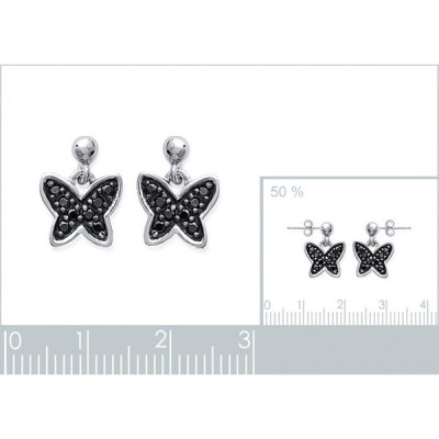 Nouveau Boucles d'oreilles papillons 14 mm - Eloane - argent 925 rhodié - zircons noirs