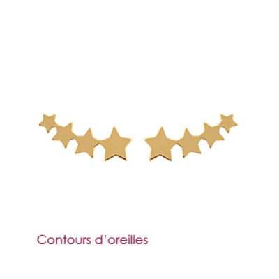 Nouveau Boucles d'oreilles contour d'oreille 4 étoiles plaqué or 750