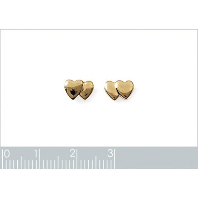 Boucles puces d'oreilles Plaqué Or 750 double coeur 8mm x 6mm