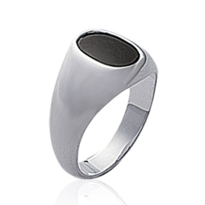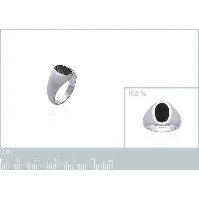 Bague chevalière homme - argent massif 925 - selle ovale - pierre imit onyx noir