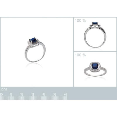 Solitaire femme - argent massif 925 rhodié - montée faux diamant bleu 4 griffes