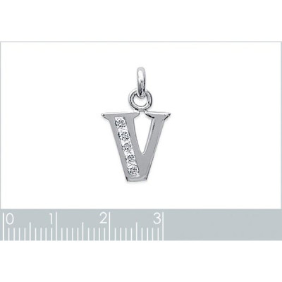 Pendentif femme Lettre "V" majuscule argent 925 rhodié et zircons 13mm