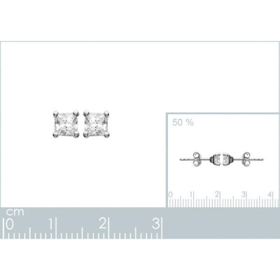 Puces d'oreilles 4 mm clous - Sandra - argent 925 rhodié - zircon carré blanc