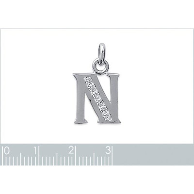 Pendentif initiale lettre "N" majuscule 13mm argent rhodié zircons femme