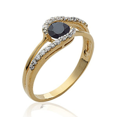 Nouveau Bague plaqué or 750 5 microns bicolore oxyde de zirconium et pierre véritable