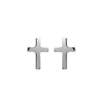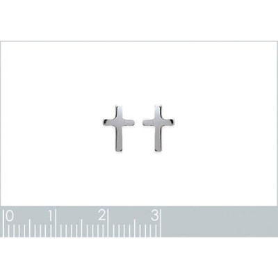 Boucles d'oreilles puces croix chretienne - Alice - argent massif 925 rhodié
