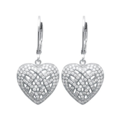 Boucles d'oreilles coeurs dormeuses 30 mm - Clara - argent 925 rhodié - zircon