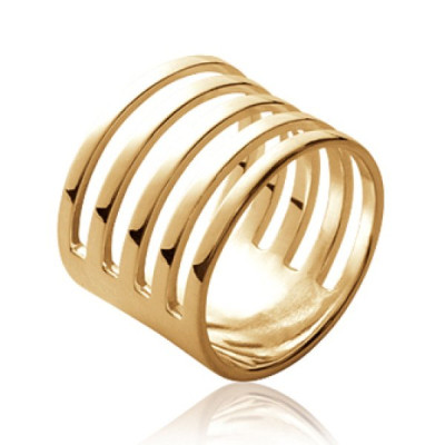 Bague longue cinq anneaux femme - plaqué or jaune 18 carats