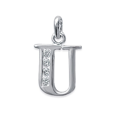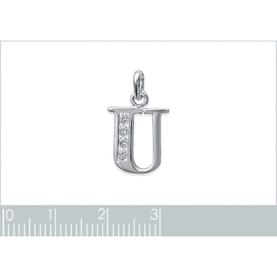 Pendentif femme Lettre "U" majuscule argent 925 rhodié et zircons 13mm