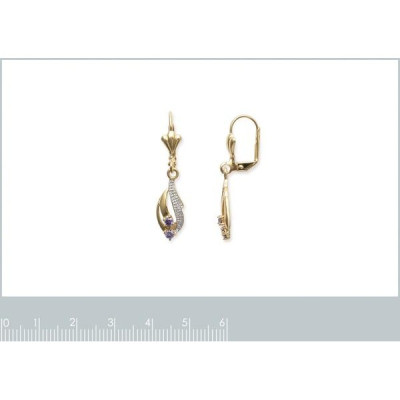 Nouveau Boucles d'oreilles dormeuses pendantes plaqué or 750 3 microns bicolore et pierre véritable