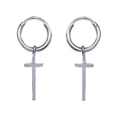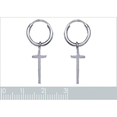 Petites créoles argent massif 925 croix pendantes 28mm x 12mm