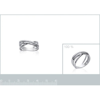 Bague croisée trois rangs femme - argent massif 925/1000 rhodié - zirconium