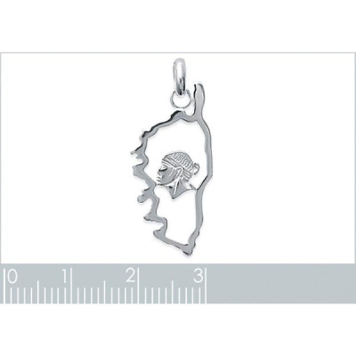 Pendentif carte de Corse argent massif 925 tête de maure 25mm x 11mm