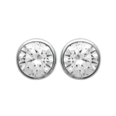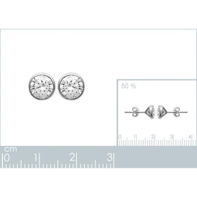 Puces d'oreilles clous rondes 6 mm - Sara - argent 925 rhodié - zircon blanc