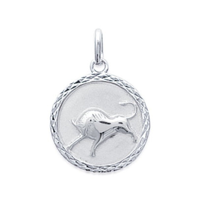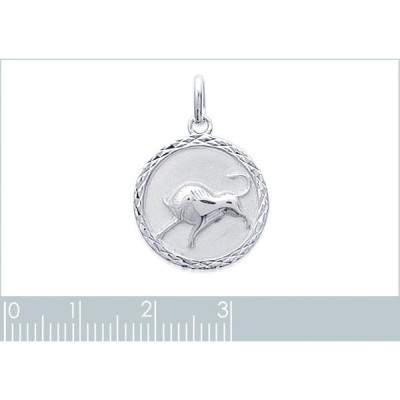 Pendentif médaille signe astrologique Taureau homme 18mm argent rhodié