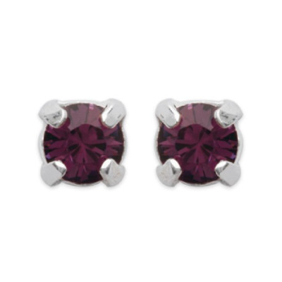 Boucles d'oreilles puces clous femme 4mm - Nina - argent massif - cristal violet