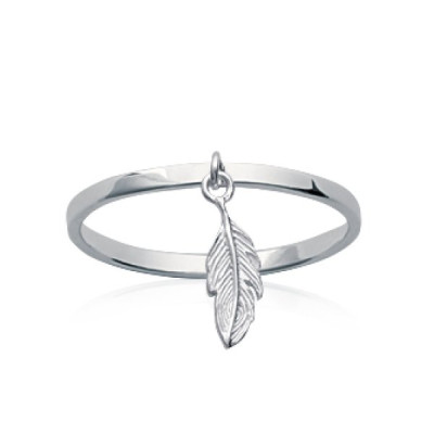 Bague alliance fiançailles plume femme - argent massif 925/1000 rhodié