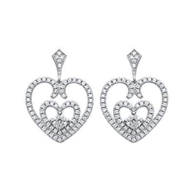Boucles d'oreilles coeurs 23 mm pendantes - Sonia - argent 925 rhodié - zircons